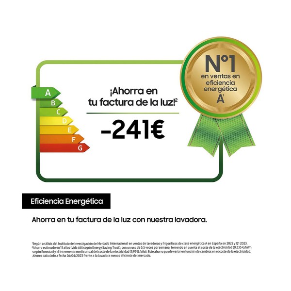 Controla y reduce el consumo de energía de la lavadora. Energy Mode[1] te permite comprobar el consumo de energía y calcular tu factura de la luz. Este modo reduce el uso de energía hasta un 70%[2] , utilizando Ecobubble™ para lavar con agua fría en lugar de caliente y un tiempo de ciclo extra.