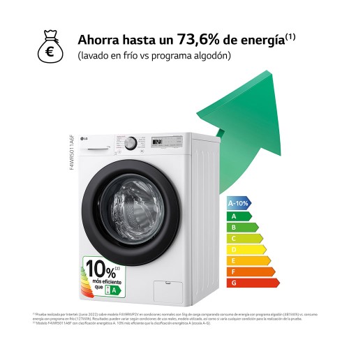 Inteligencia Artificial detecta las características del tejido y la carga reduciendo un -10% el desgaste en tu ropa.